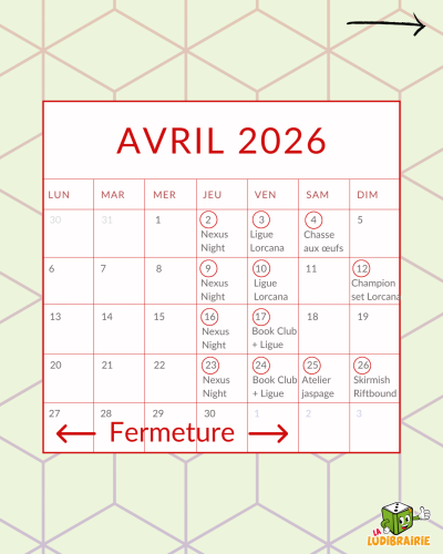 Côté Lorcana, en plus de la session hebdomadaire de ligue le vendredi soir, nous proposons un tournoi au format Pack Rush le samedi 21 mars à partir de 15h (PAF de 15€).